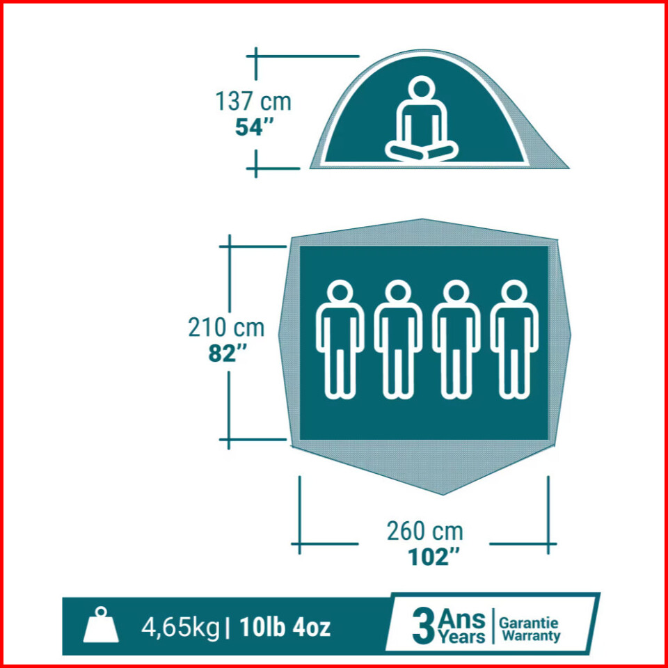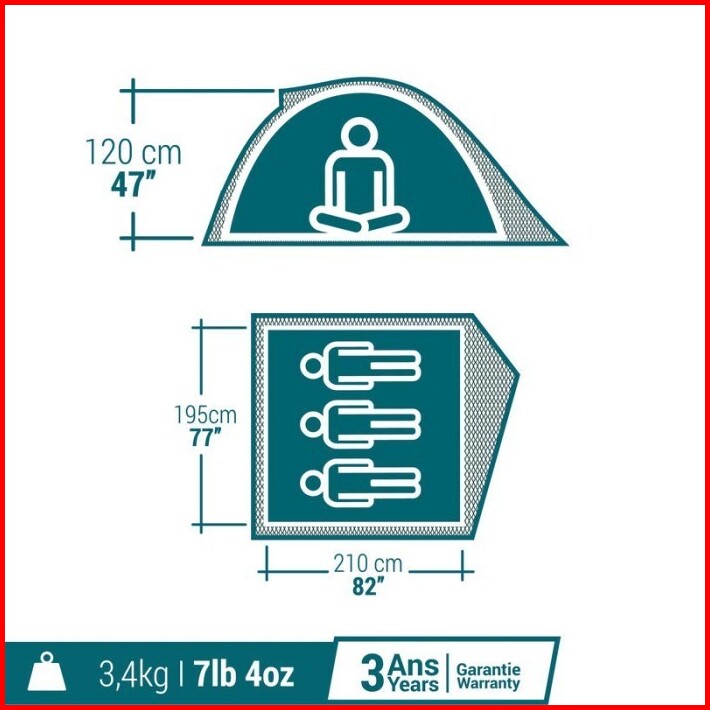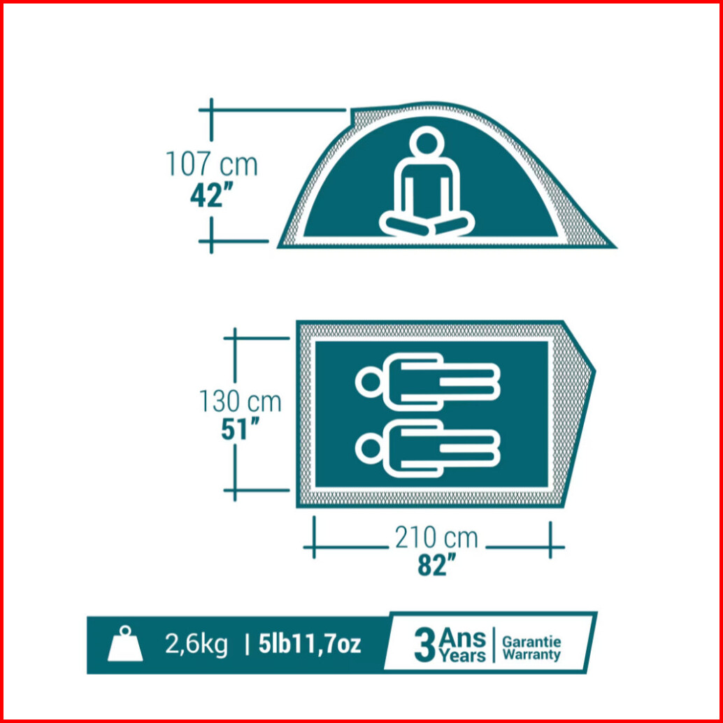Tenda Camping Quechua Mh100 2-3 Orang Double Layer Premium Material