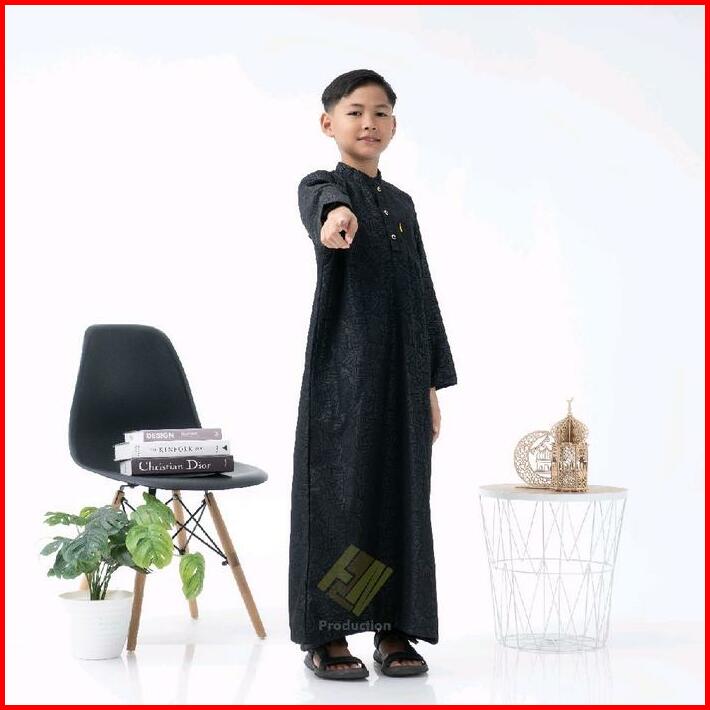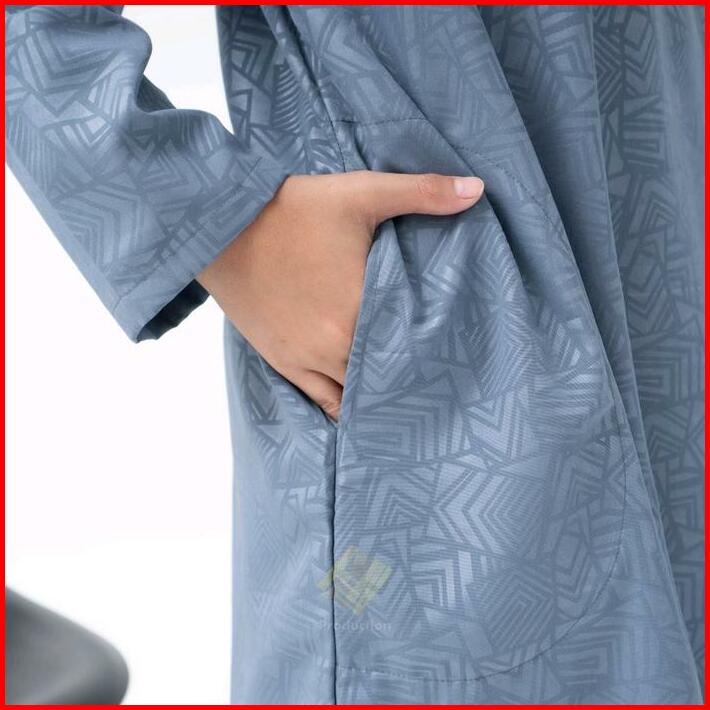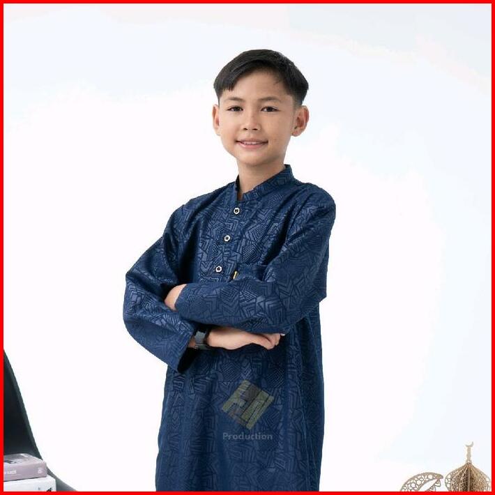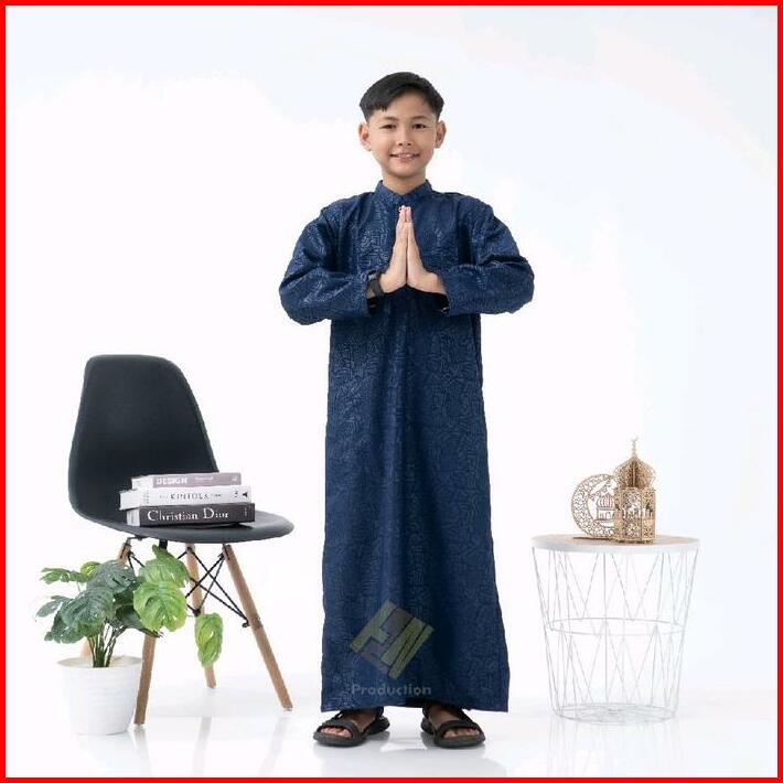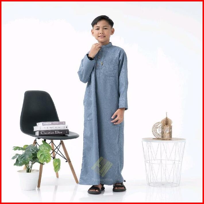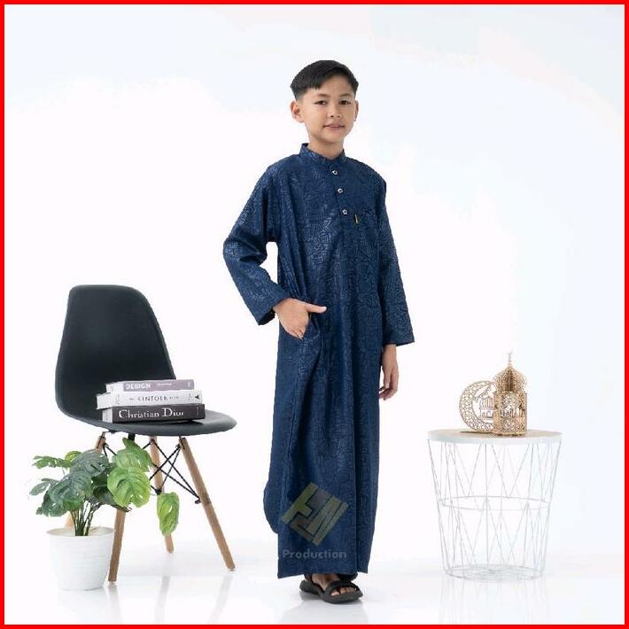 H2n Production Jubah Anak Laki-laki Sultan Embos Panjang Set Pakaian Muslim Katun Nyaman Dewasa Biru Motif Bunga Minimal