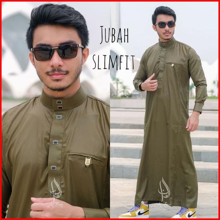 Slimfit Jubah Alfaan Gamis Pria Jubah Pria Muslim Busana Muslim Pria Model Terbaru Alzan Kancing Manset Panjang Polyeste