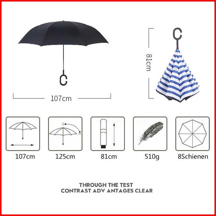 Payung Terbalik Kazbrella Gagang C Bahan Tebal Import Musim Hujan