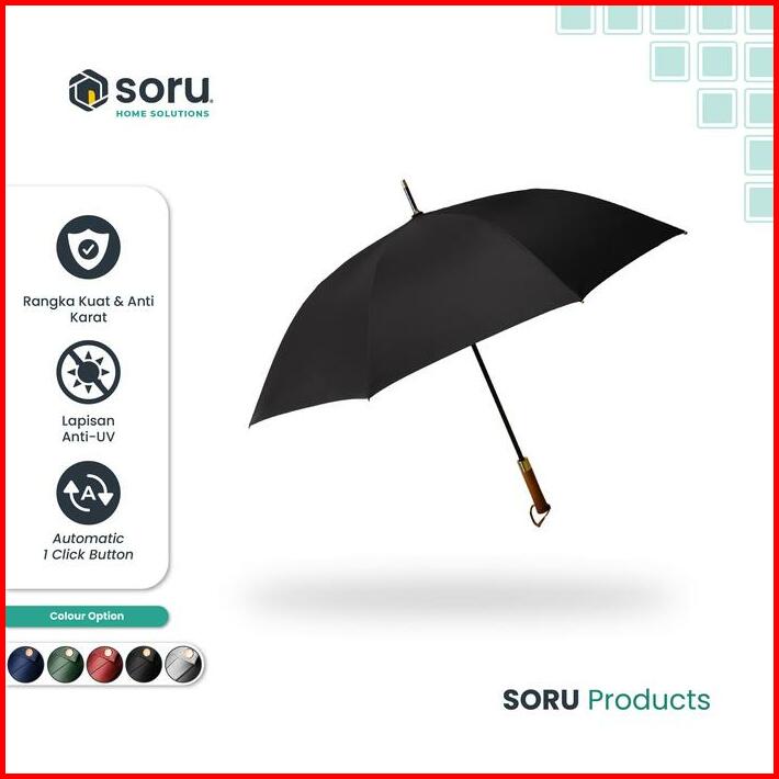 Soru Payung Protection Besar Jumbo Otomatis Premium Fiberglass Handle Kayu