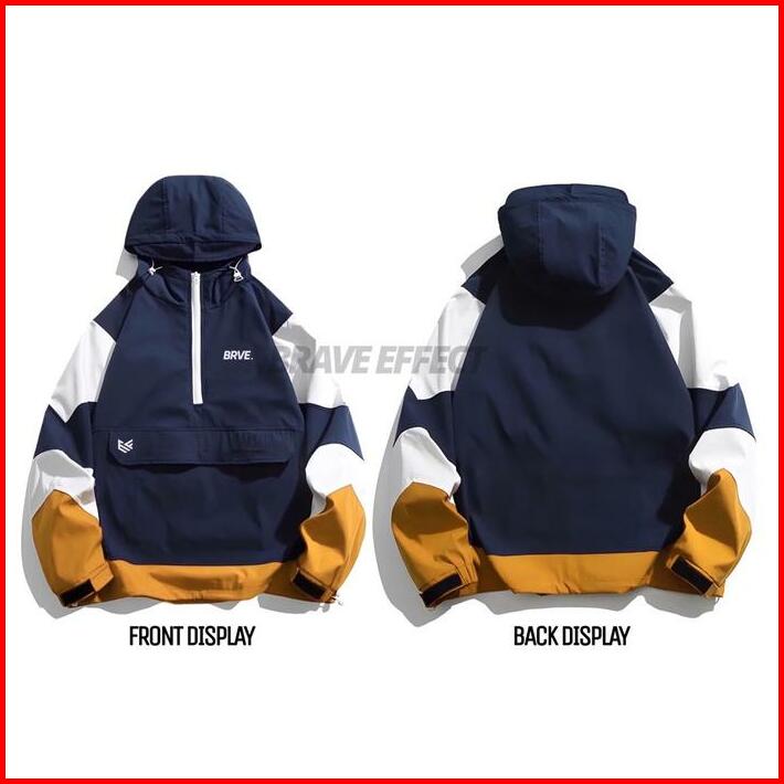 Brave Effect Cagoule Jacket Windbreaker Waterproof Anorak Jaket Outdoor Unisex Pria Wanita Parasut Panjang Casual Bomber