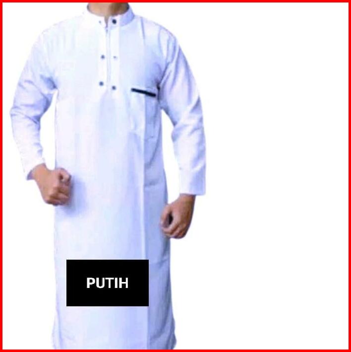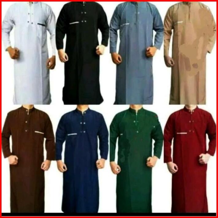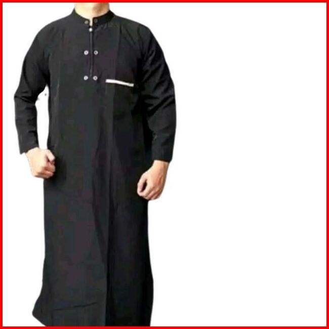 Jubah Pria Dewasa Gamis Dewasa Laki-laki Katun Hitam Putih Panjang Pria Muslim