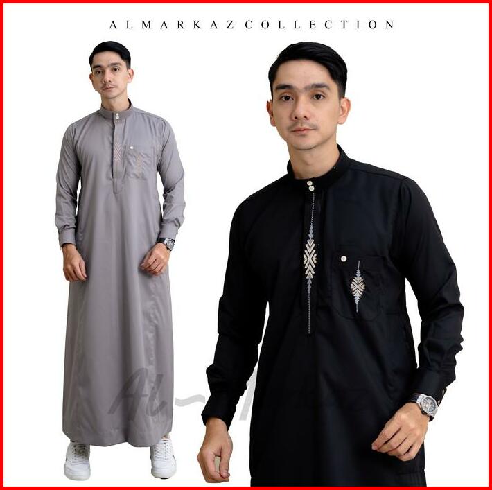 Jubah Pria Gamis Muslim Model Bordir Sultan 3 Katun Panjang Hitam