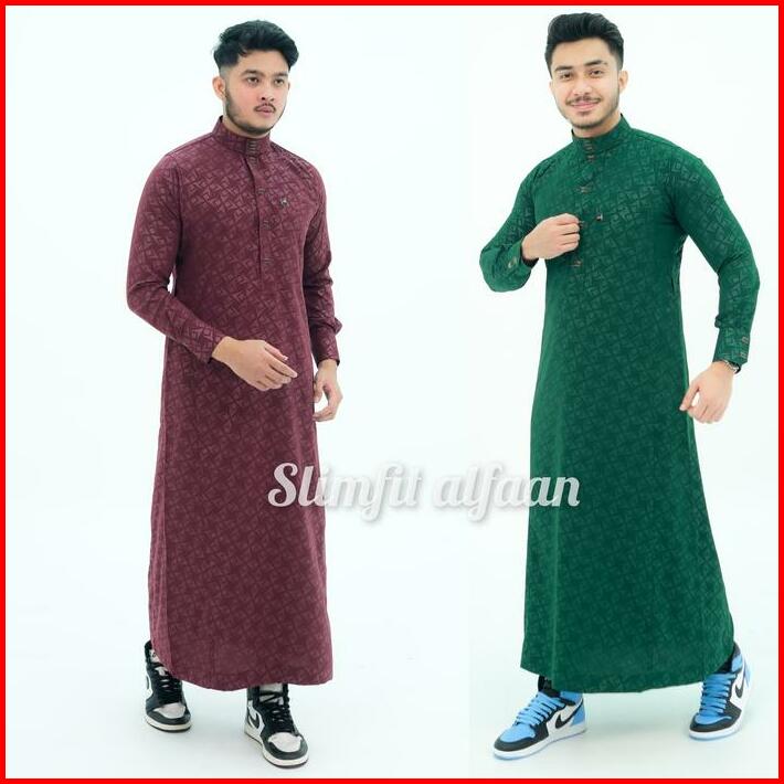 Jubah Slimfit Jubah Gamis Pria Jubah Muslim Busana Muslim Pria Jubah Saudi Model Alharamain Al Noor Kancing Manset Motif