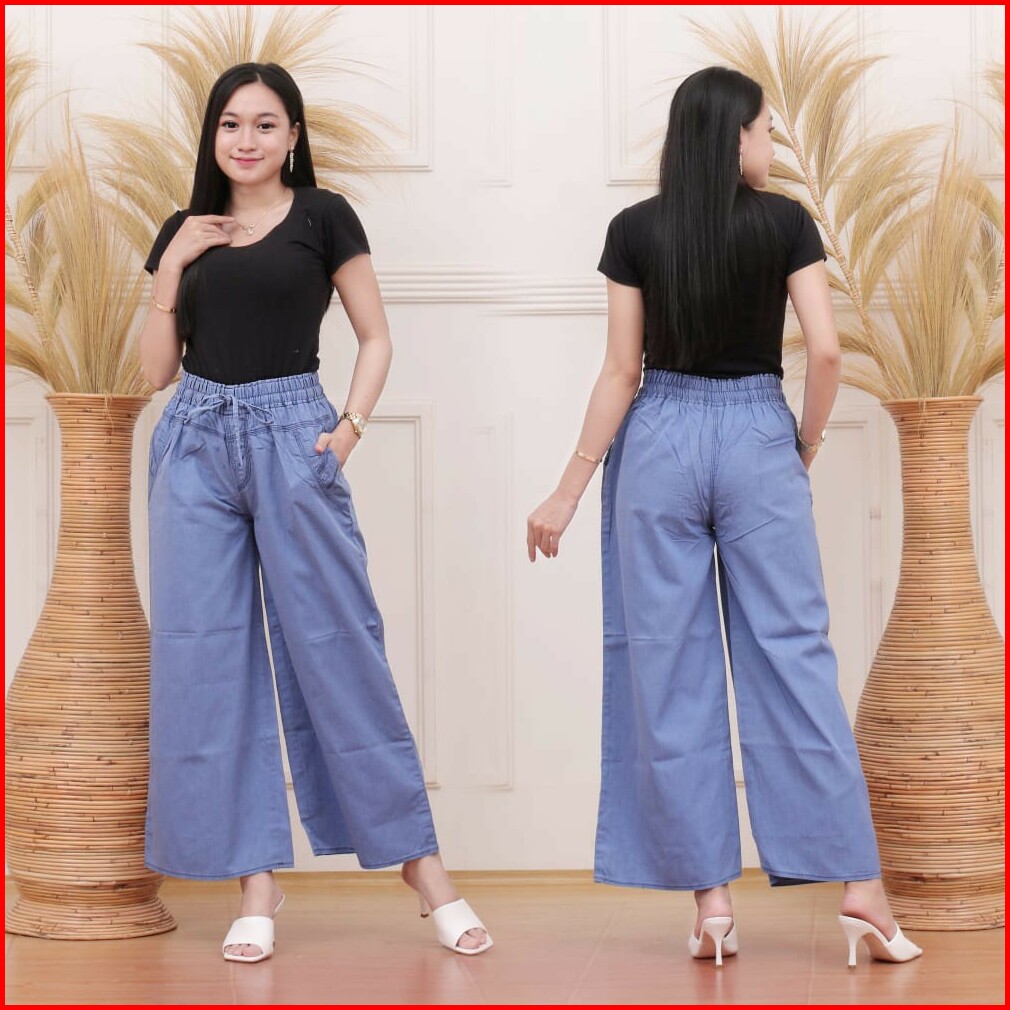 Celana Kulot Jeans Wanita Hight Waist Premium