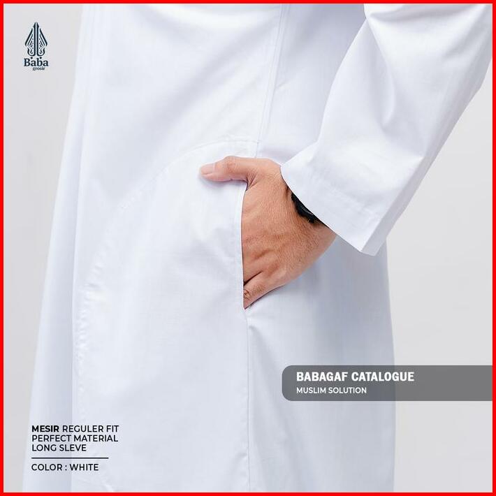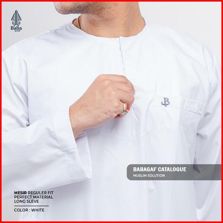 Gamis Jubah Pria Mesir Tanpa Kerah Babagaf Lengan Panjang