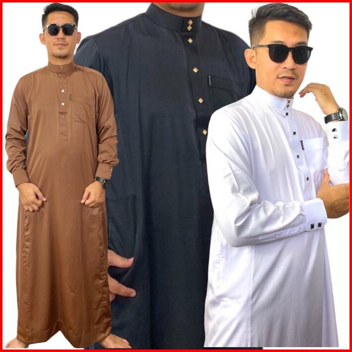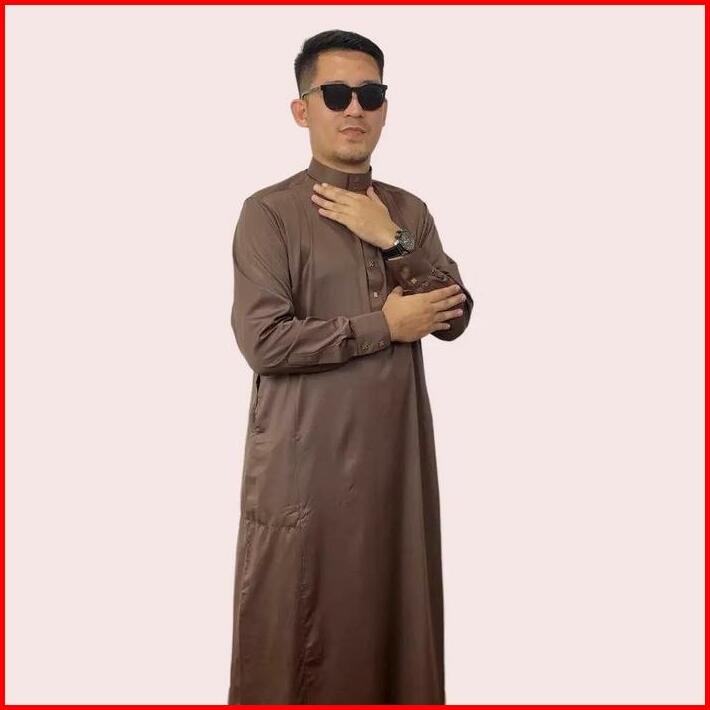 Jubah Gamis Slimfit Pria Muslim Dewasa Dan Remaja Tesla Lengan Panjang Manset Bahan Katun Tesla Robes Brown Hitam Gamis
