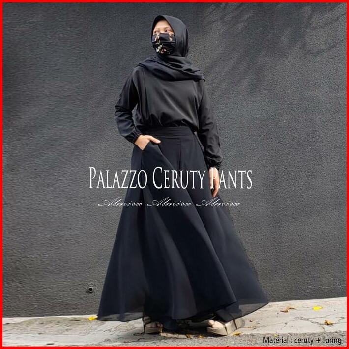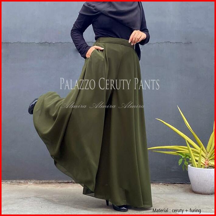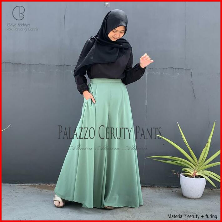 Celana Kulot Panjang Wanita Model Payung Mayung Lebar Palazzo Sifon Chiffon Ceruty Pants Griyaraditya Karet Melar Casual