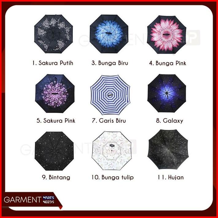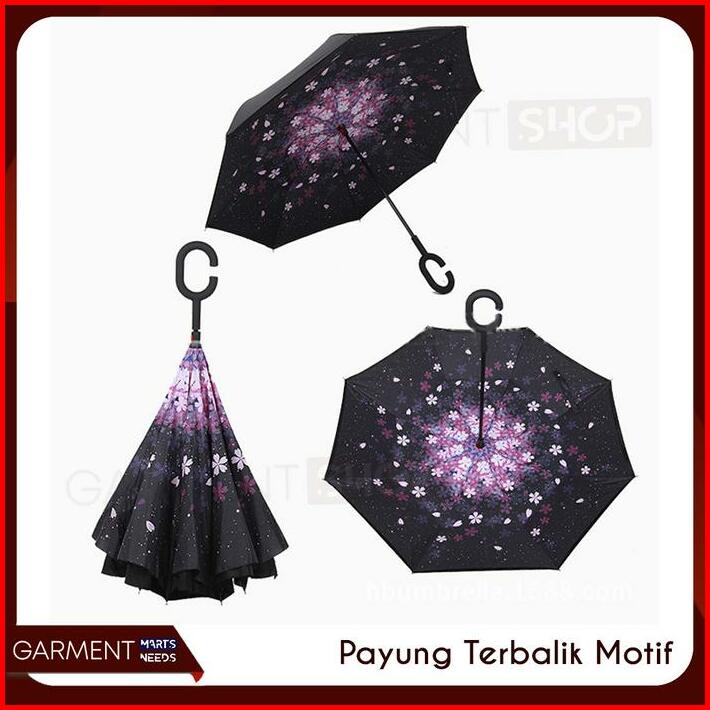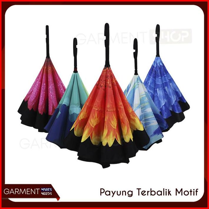 Payung Terbalik Besar Motif 2 Lapis Kain Gagang C Reverse Umbrella Kazbrella