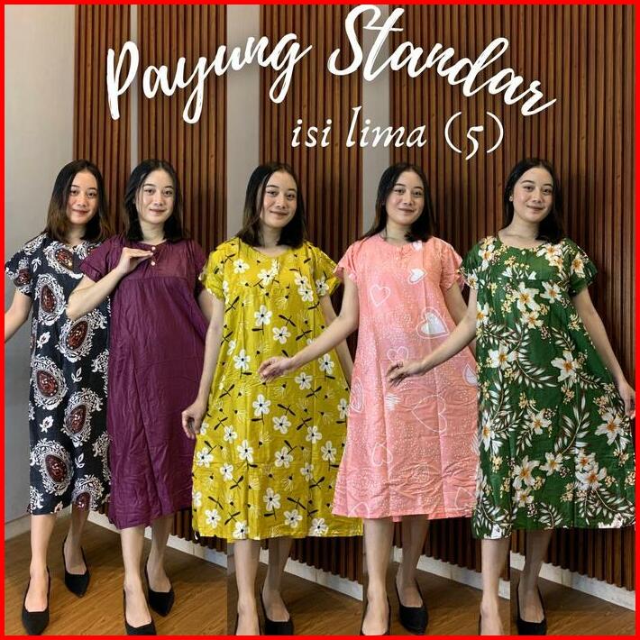 Paket 5 Daster Payung Standart Motif Random Busui Panjang Rayon Bumil Wanita Kancing Tidur Ibunyaman Batik Mewah Hamil L
