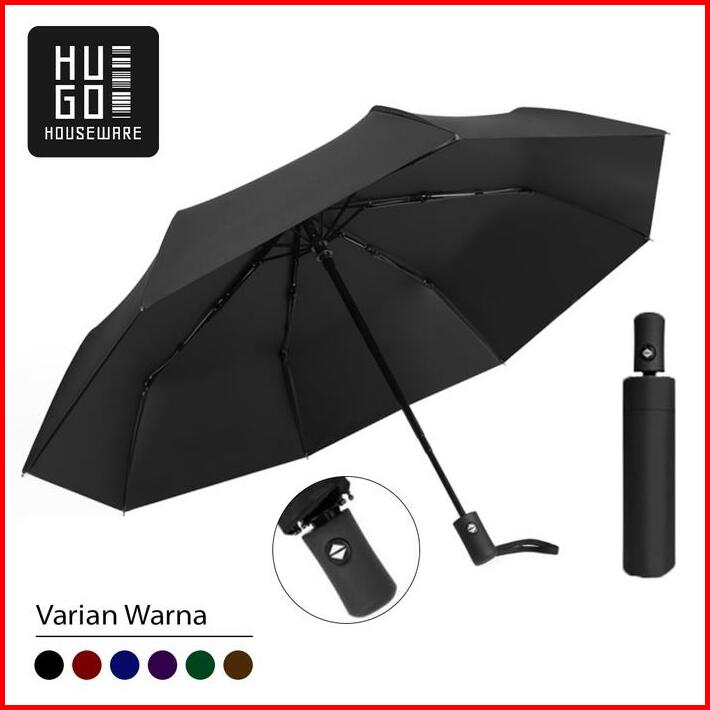 Payung Lipat Otomatis Buka Tutup Polos Anti Uv Lipat Tiga Premium Hugo