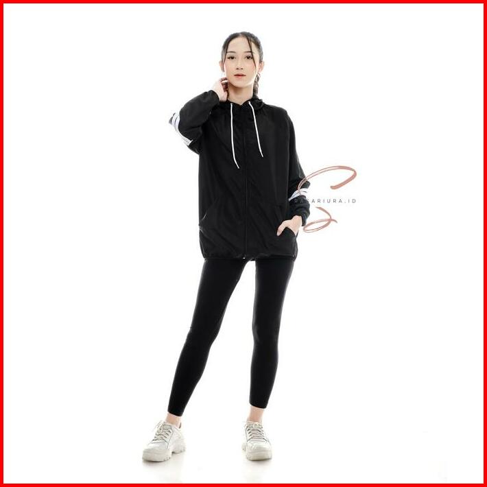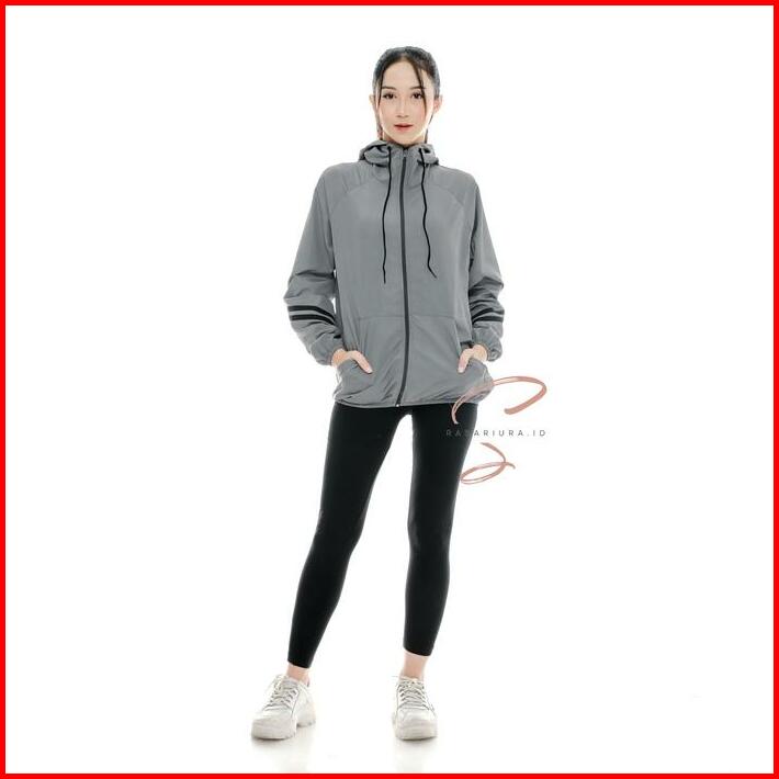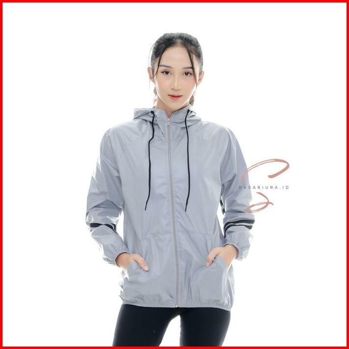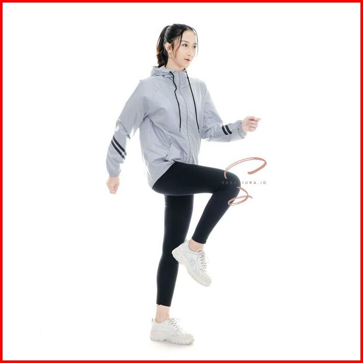 Jaket Parasut Olahraga List Sauna Suit Jogging Lari Bersepeda Despo Gym Fitnes Senam Pria Wanita Abu Sport