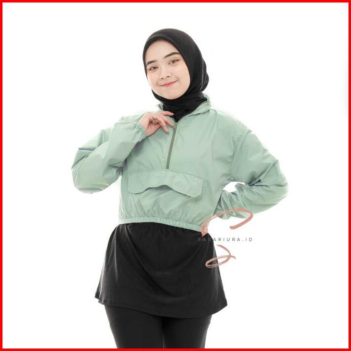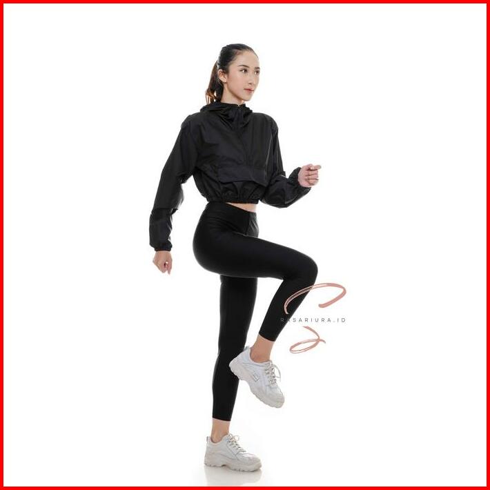 Women Jaket Crop Olahraga Running Gym Yoga Zumba Sport Parasut