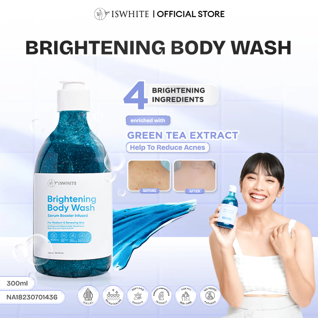 ISWHITE Brightening Body Wash Serum Booster Infused 300ml - Sabun Mandi Cair Pencerah Tubuh - Membasmi Jerawat Punggung