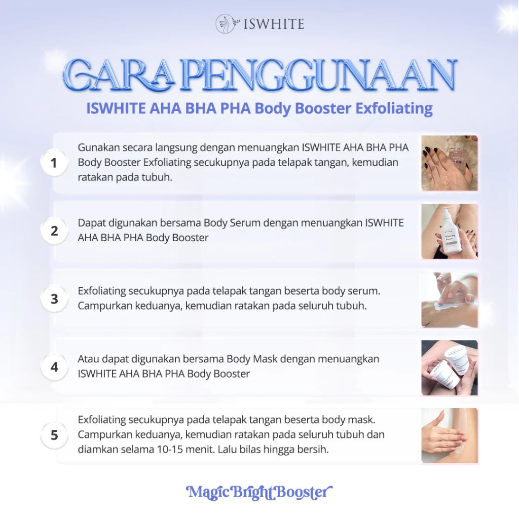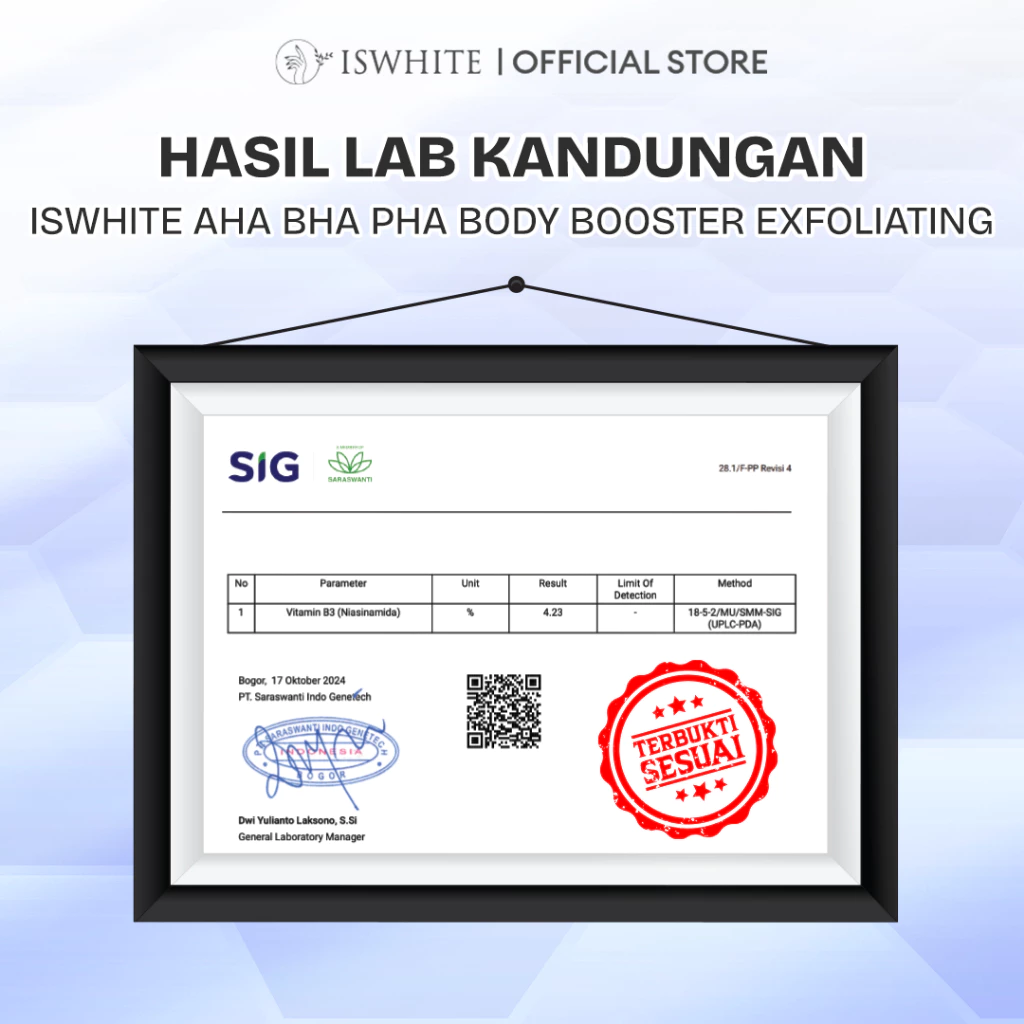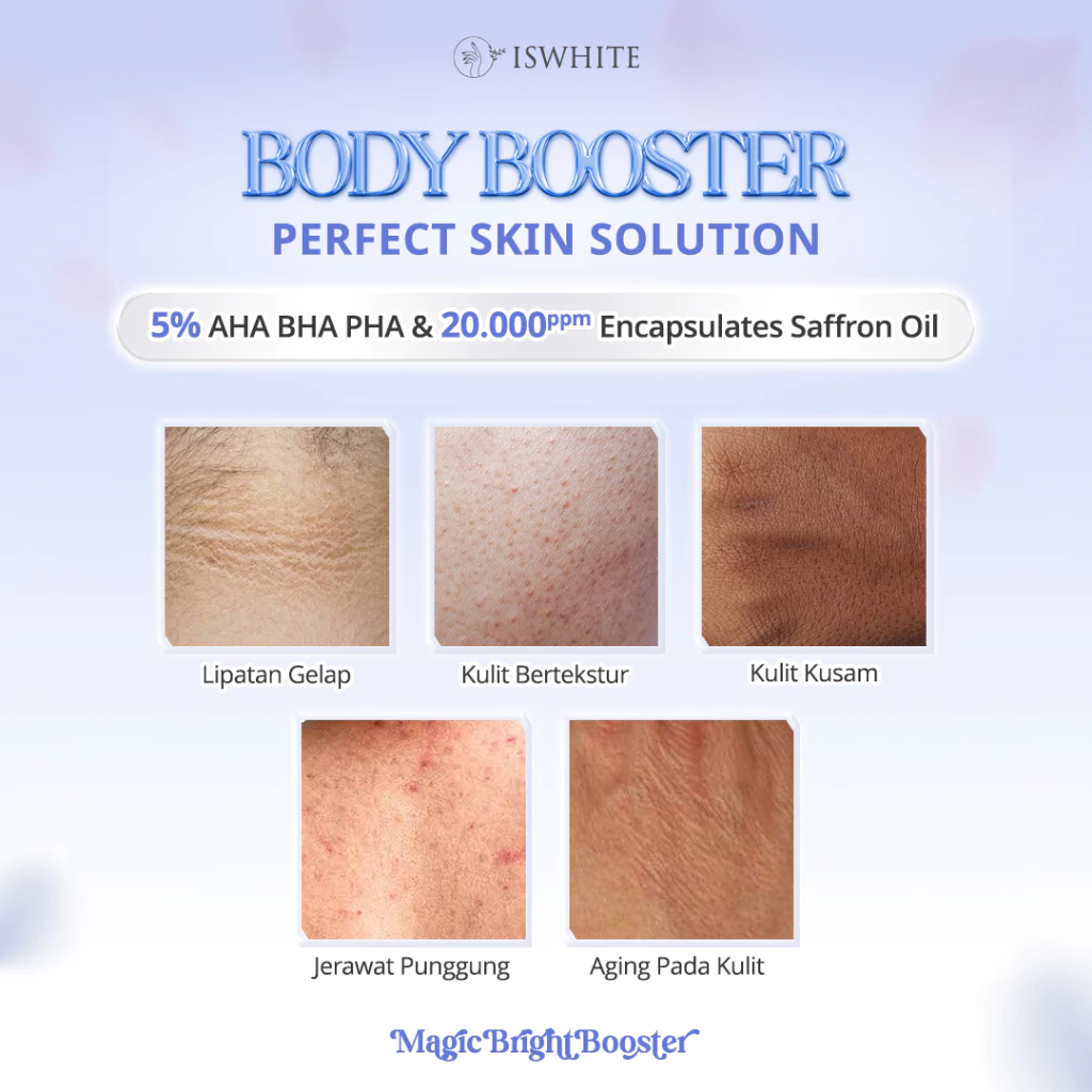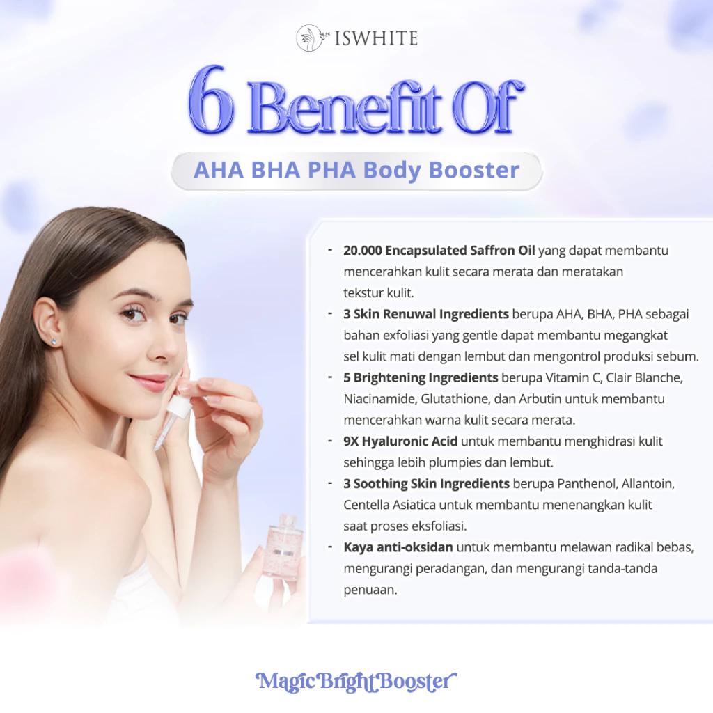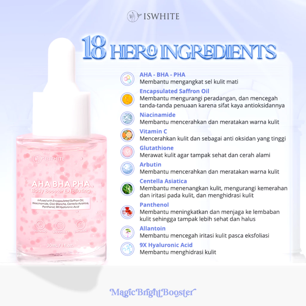 ISWHITE 5% AHA BHA PHA Body Booster Exfoliating Serum with 20000 Encapsulated Saffron | Serum untuk Mencerahkan Badan