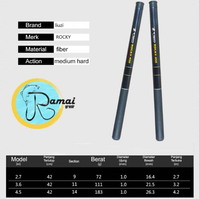 Joran Tegek Ruas Pendek Rocky Medium Fiber