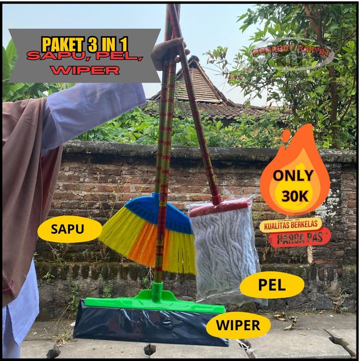 PAKET SAPU 3 IN 1 SAPU, PEL, WIPER TERMURAH @1 SET ALAT KEBERSIHAN