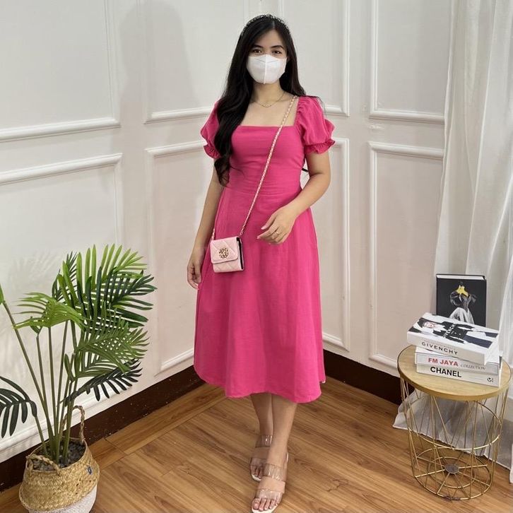 toply shop dres korean style / dres viona smock / dres wanita bahan cey krinkle