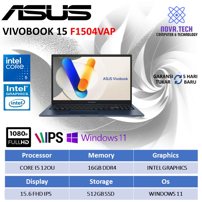 Asus Vivobook 15 F1504VAP Laptop Core i5 120u Ram 16gb 512gb Ssd Windows 11 Layar 15.6FHD IPS