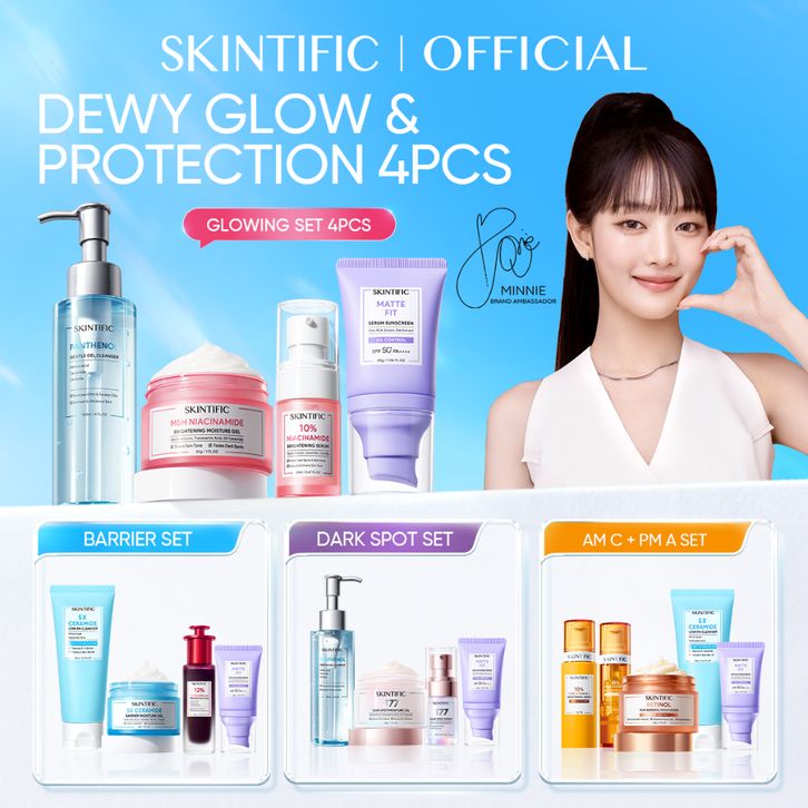 Skincare Wanita / Skintific Dewy Glow & Protection 4pcs / Serum Wajah Moisturizer / Paket Skincare / Skincare Bpom