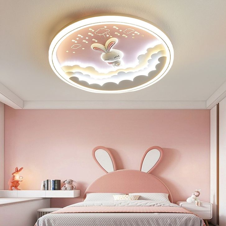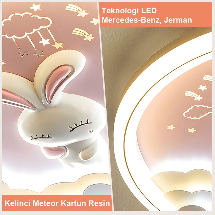 Lampu Plafon Kamar Anak Lampu Hias Kartun Kamar Tidur Kelinci Bentuk 48cm LED 3 warna