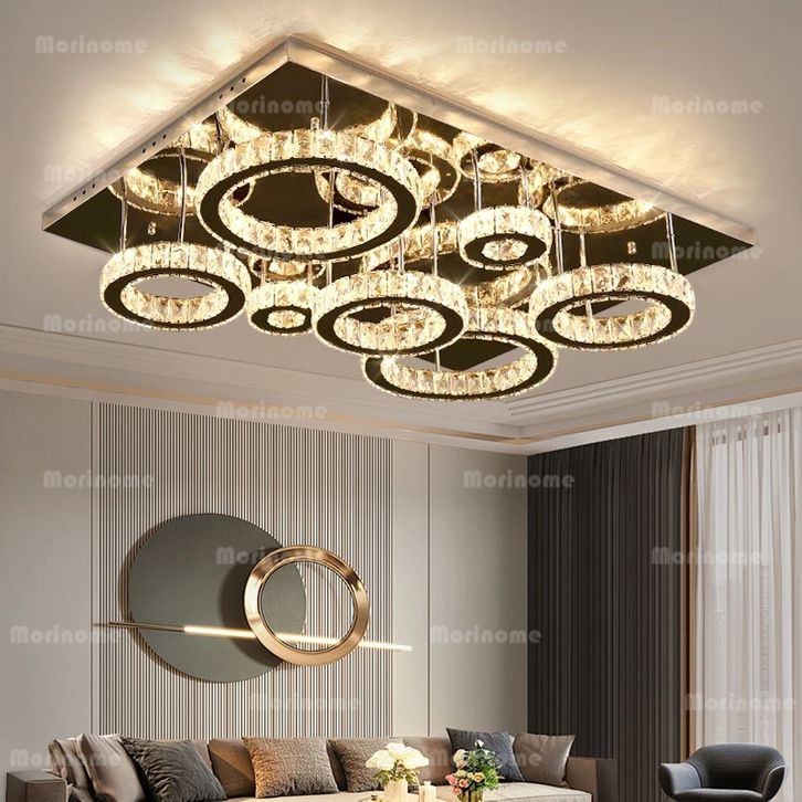 Lampu Gantung R. Tamu Kristal Lampu Plafon Lampu Hias Gantung Minimalis .ern Mewah Silver 100.70cm 140W LED 3 Warna