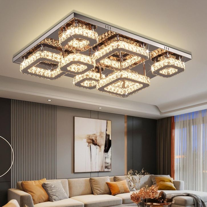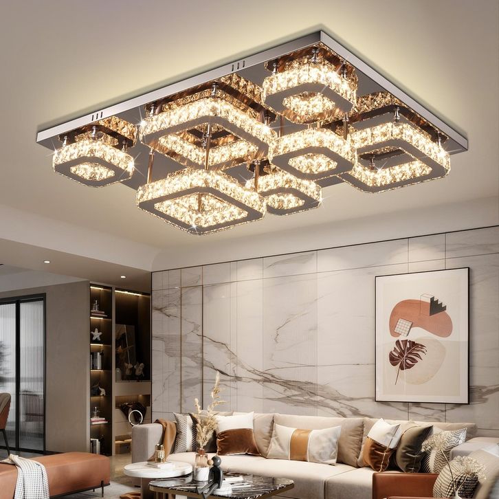 Lampu Gantung R. Tamu Kristal Lampu Plafon Lampu Hias Gantung .ern Mewah LED 3 Warna 100.70cm lampu r. makan Aula vila