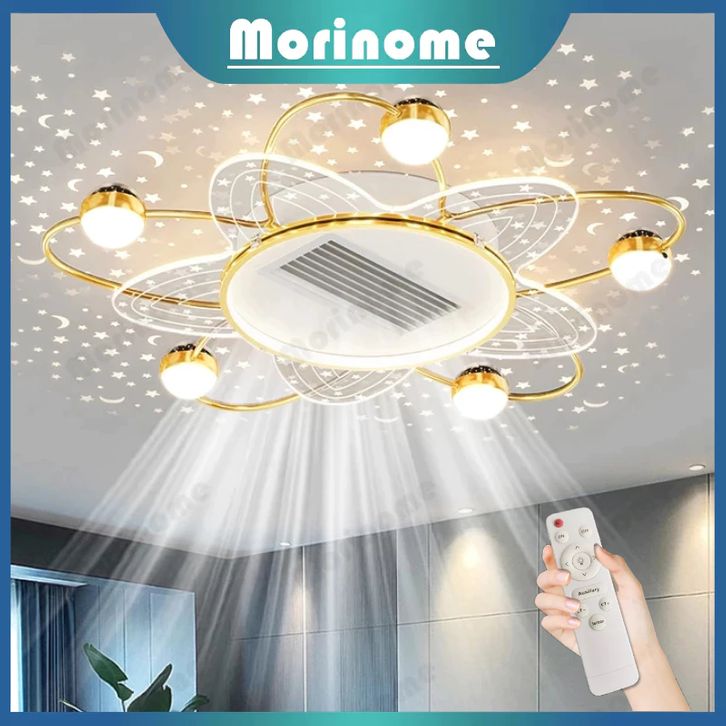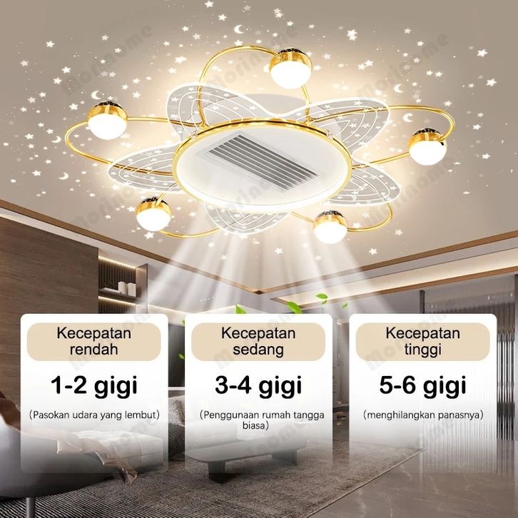 ✨1 Tahun Garansi✨Lampu Gantung Kipas 2 IN 1 Kristal Chandelier Mewah Gold Crystal Kipas senyap tanpa bilah 3 Warna LED