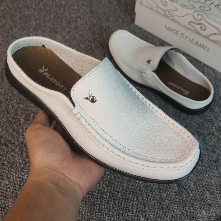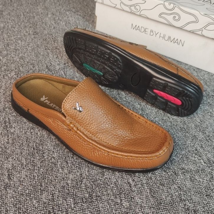 GO Sepatu Sandal Pria 100% Kulit Sapi Asli Slop Pria Kulit Asli