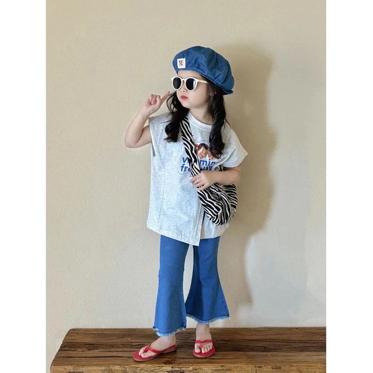 Setelan Anak Perempuan Terbaru 2025 2-10tahun Setelan Jeans Terbaru Kaos Abu Kekinian Baju Anak Perempuan Korean Style
