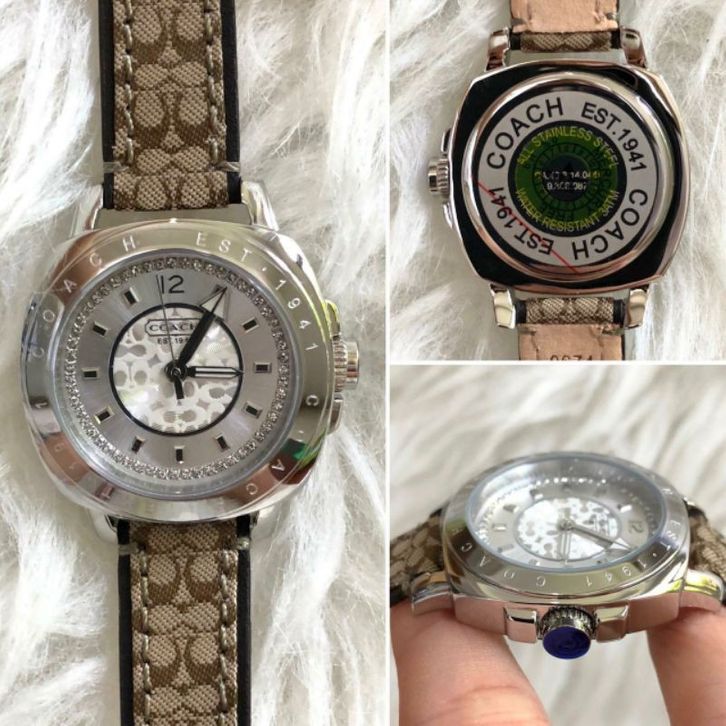 Jam Tangan Wanita Coach Original Silver Strap Leather Garansi .