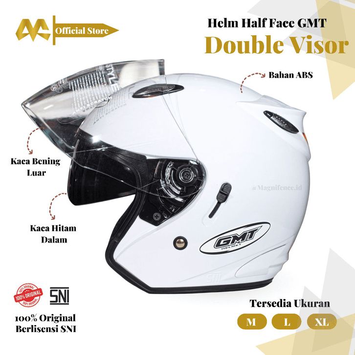 Helm Half Face GMT Original Double Visor Helem Motor SNI Murah Helmet Pria Wanita Dewasa