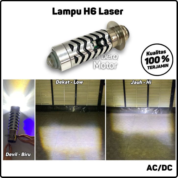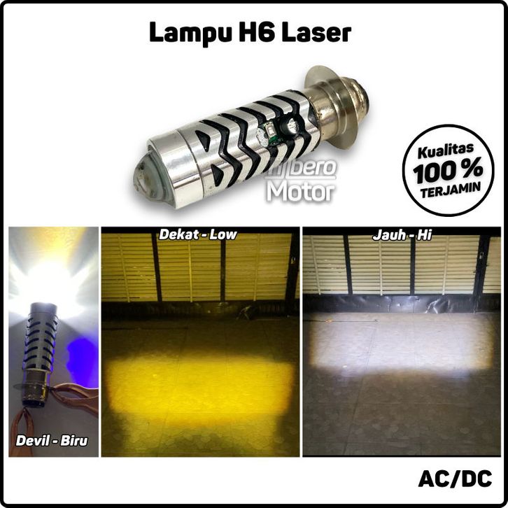 Lampu utama LED H6 Laser jauh dekat 2 Warna Putih Kuning Biru / Lampu Depan HID Laser D2