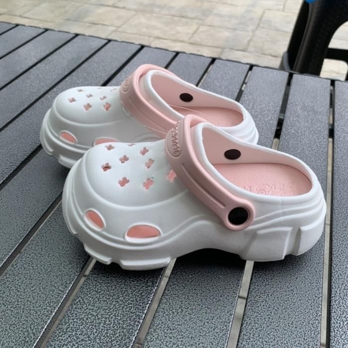 Sandal anak perempuan 2-12 tahun koleksi baru sepatu lubang-lubang gaya Korea dengan aksesori - 2305-PUTIH+PINK