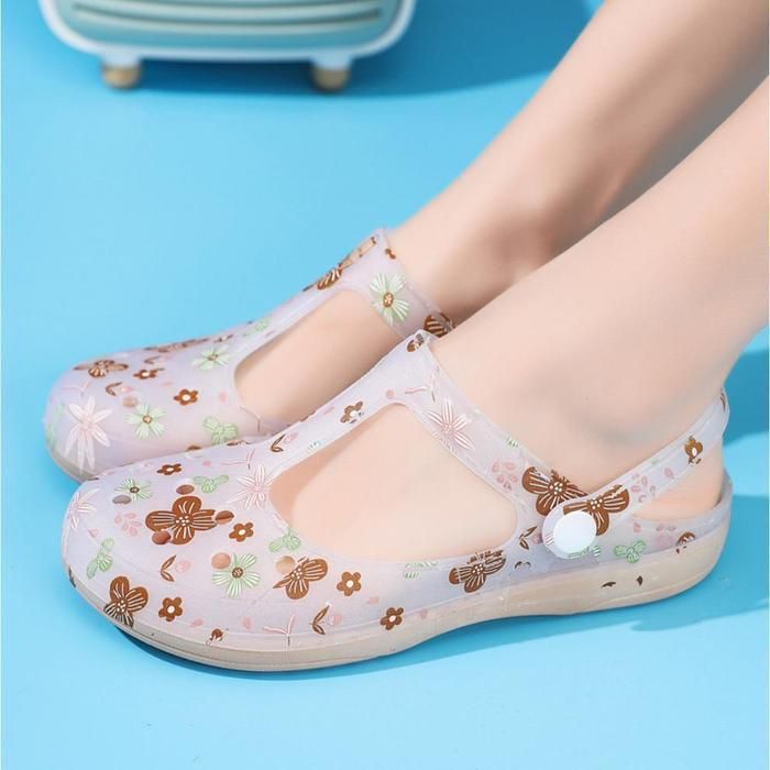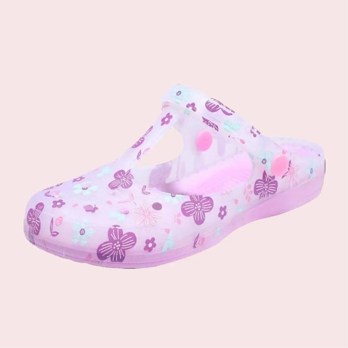 OKAIDO STORE Sendal Sepatu Motif Bunga Bahan Jelly Bening Transparan Coklat Karet Pink - COKLAT+BUNGA