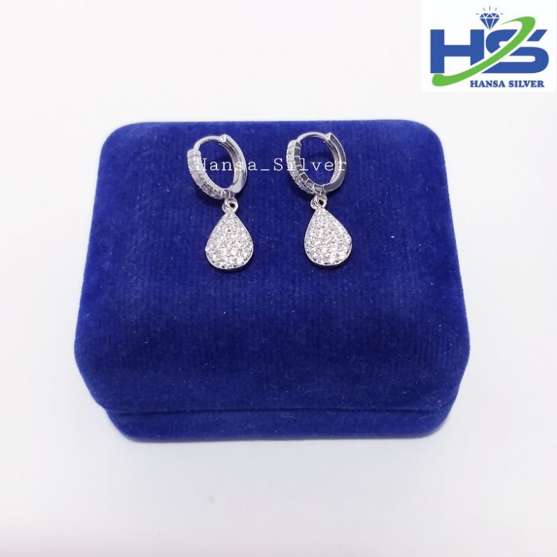 Anting Perak Asli Silver 925 Lapis Ems Putih Jepit Agogo Oval Tetes Air - Antingg Wanita Anti Karat