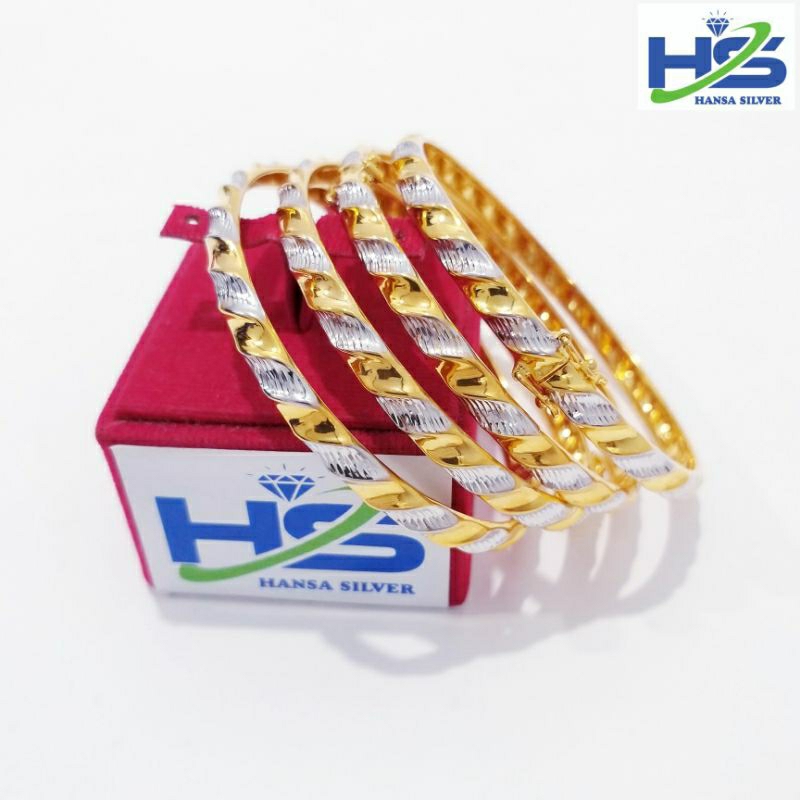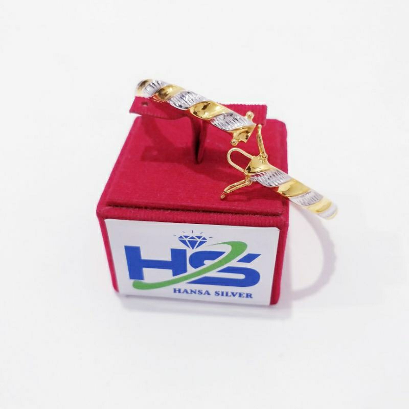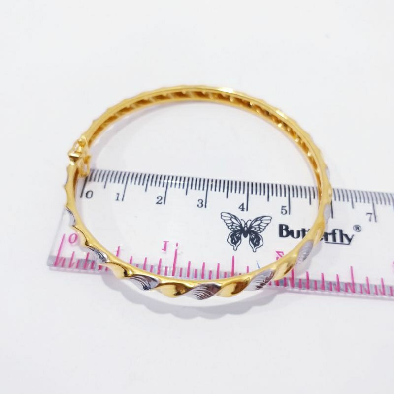 Gelang Perak Asli Silver 925 Lapis Ems Kuning Model Bangle Kombinasi Putih