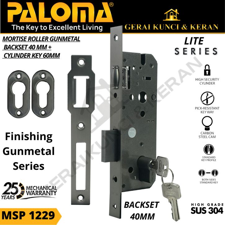 Body KUNCI MSP 1222 1228 1229 Pintu Paloma Pelor Mortise Lock Set Roller Backset 40mm CYLINDER STAINLESS 60 mm