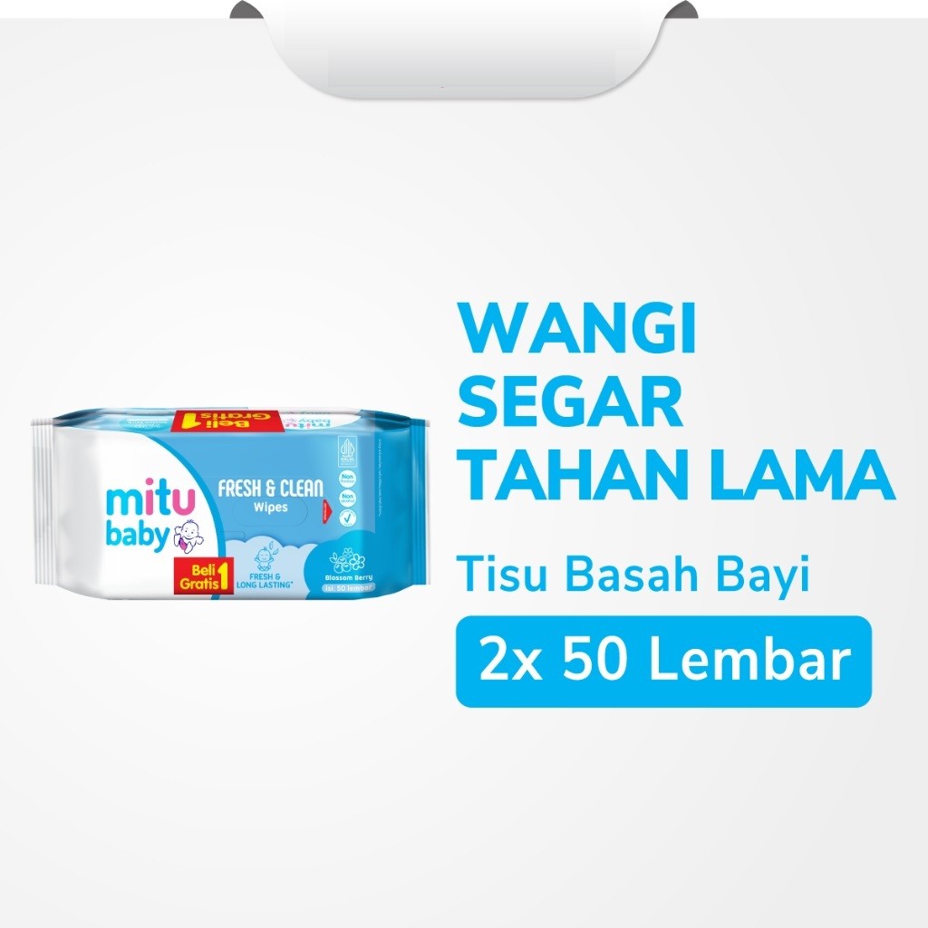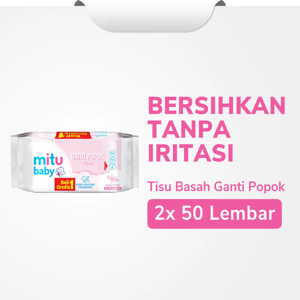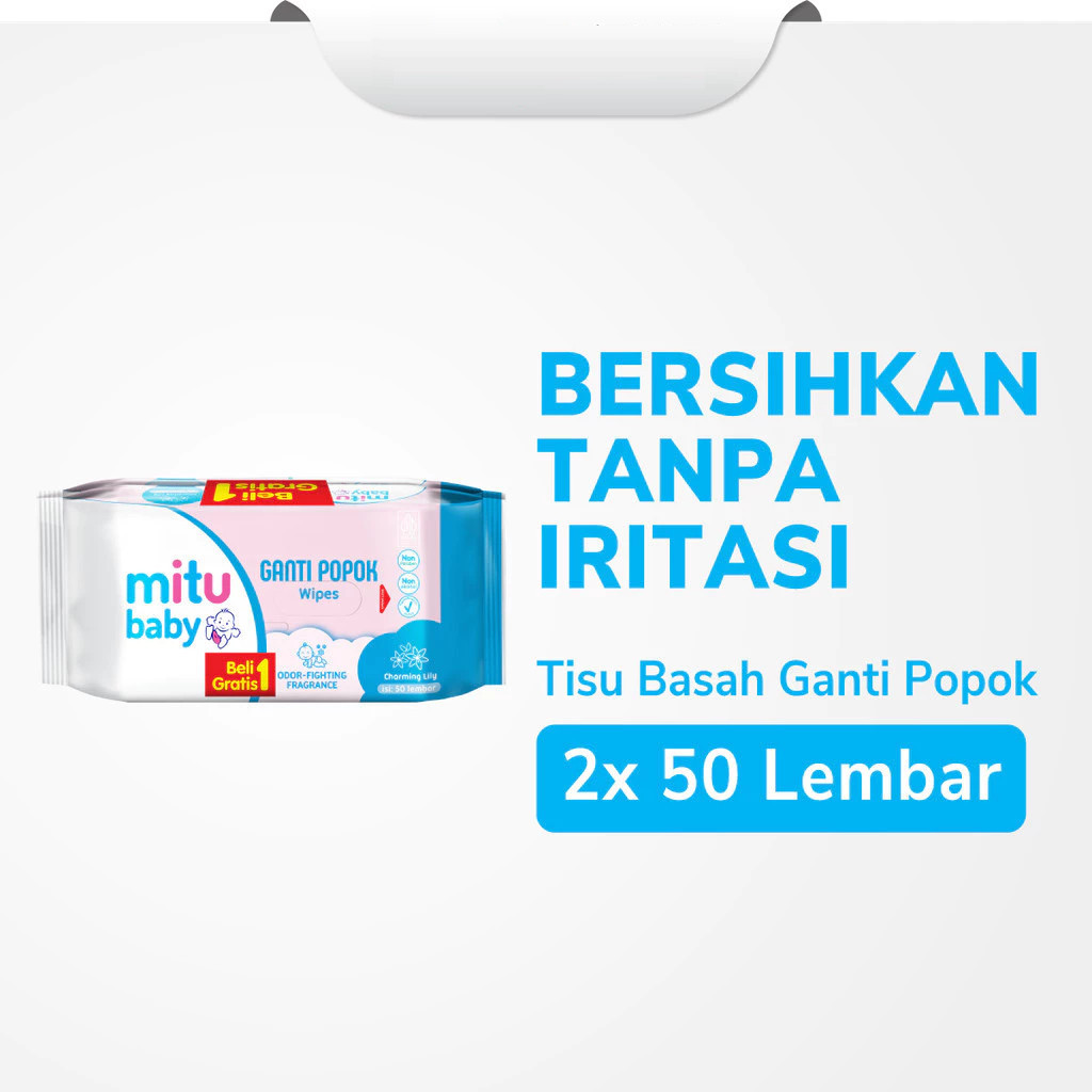 Mitu Baby Wipes Tisu Basah Ganti Popok 50'S Beli 1 Gratis 1-Tisu Basah Bayi | Merah Jingga Official