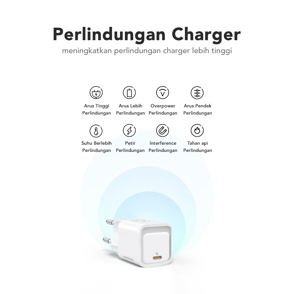AMINO PD 25W Type C Mini Kepala Charger Super Smart USB C QC Fast Charging Untuk Iphone Samsung Xiaomi