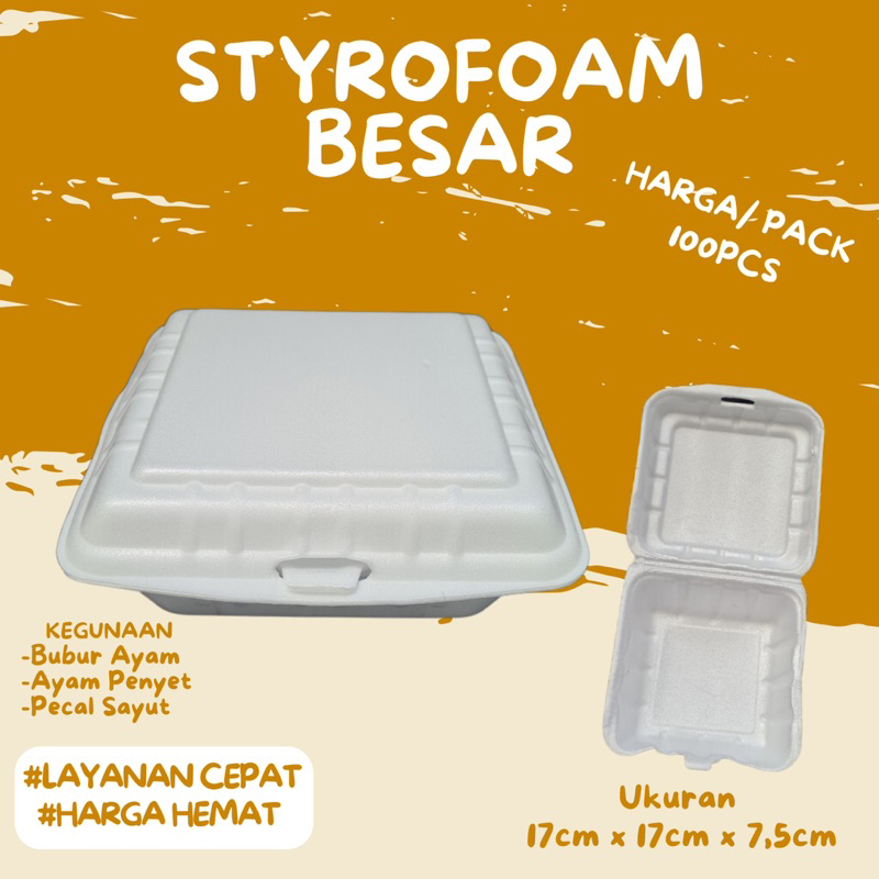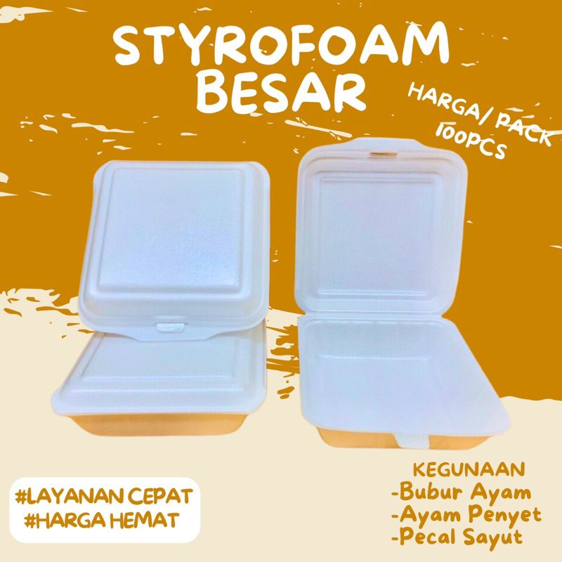 Sterofoam Besar Isi 100Pcs Box Kotak Makan Strofoam Gabus Sarapan Lunch Bubur Ayam Geprek Pecal Sterofoam