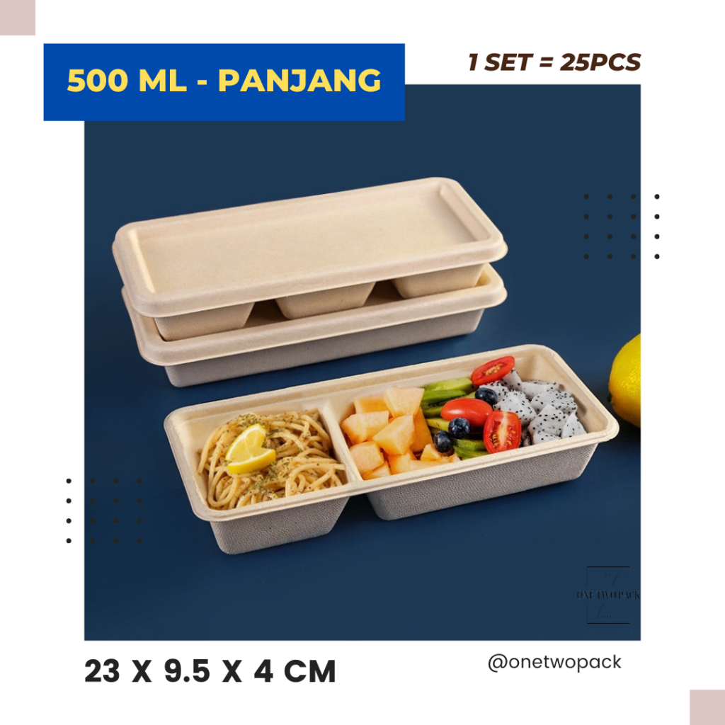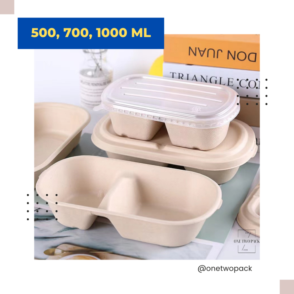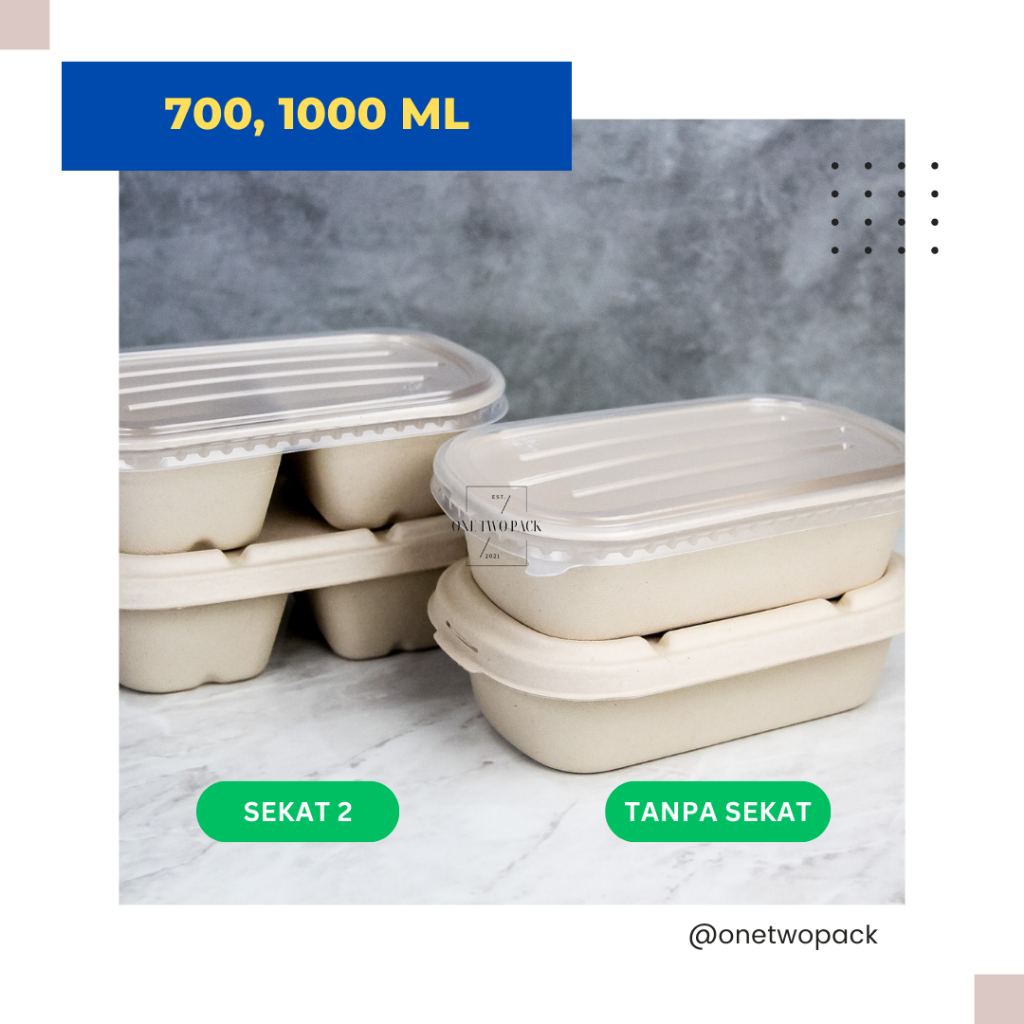 [25 pcs] Take Away Box Kotak Makan Bagasse 500 / 700 / 1000 mL | Wheat Straw | Wadah Makanan Ramah Lingkungan Sekali Pak