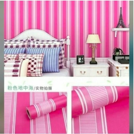 Wallpaper Dinding Roll Murah Motif Salur Pink Series Premium Ukuran 45cm x 8m Wallstiker Ruang Tamu Kamar Tidur Murah