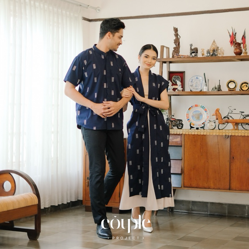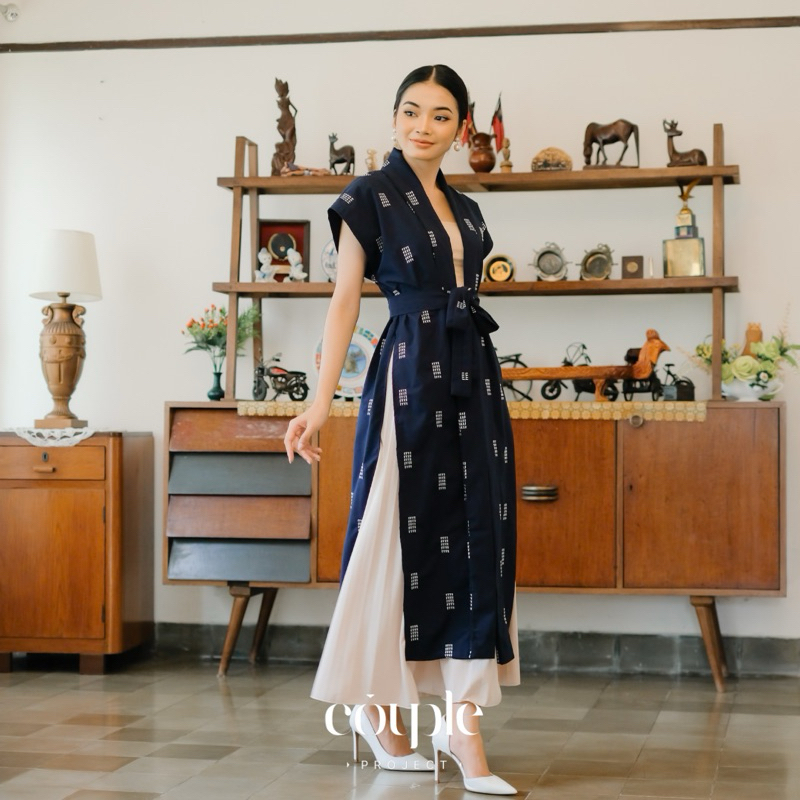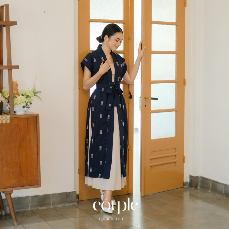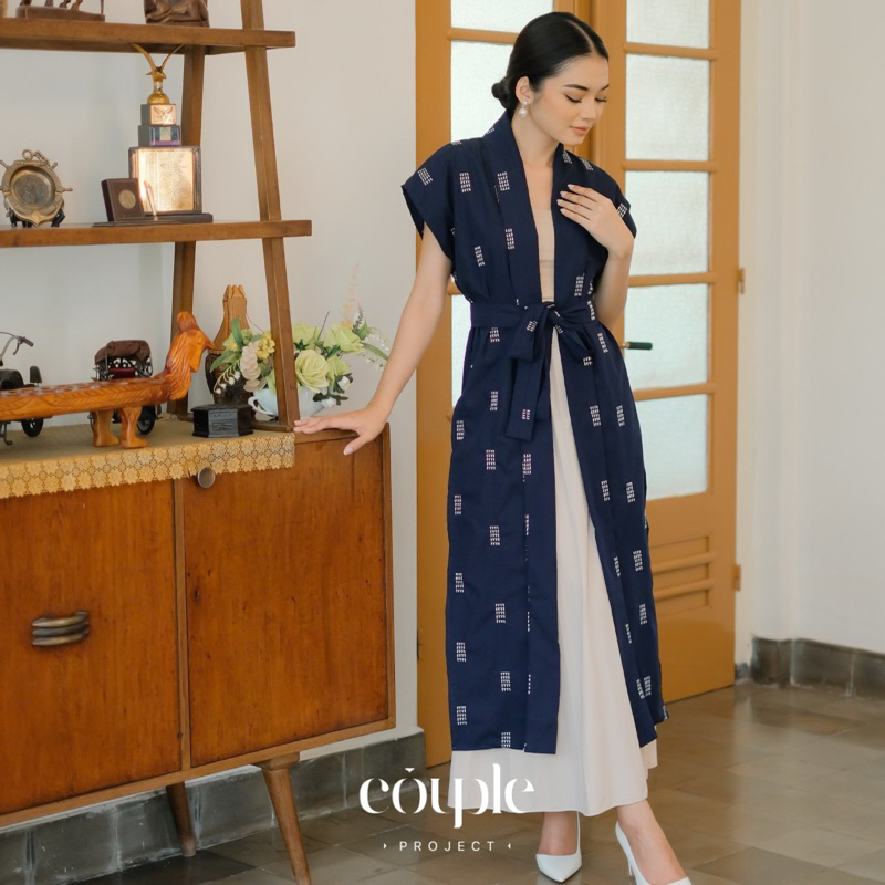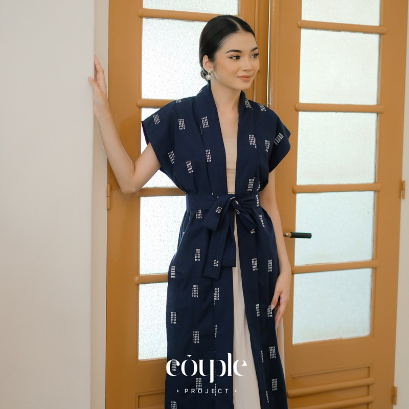 COUPLE PROJECT TEMU COLLECTION - OUTER DRESS KATUN EMBROIDERY NAVY WANITA MUSLIM DEWASA KONDANGAN