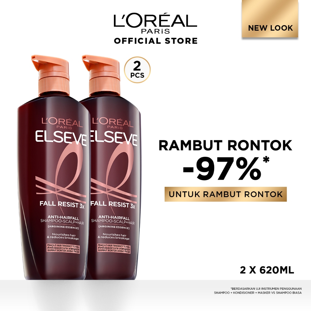 [Paket Hemat Isi 2] L'Oreal Paris Fall Resist 3X Anti-Hairfall Shampoo 620ml x2pcs Scalp Hair Care Dengan Arginine Prote