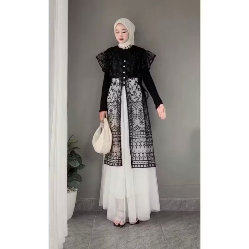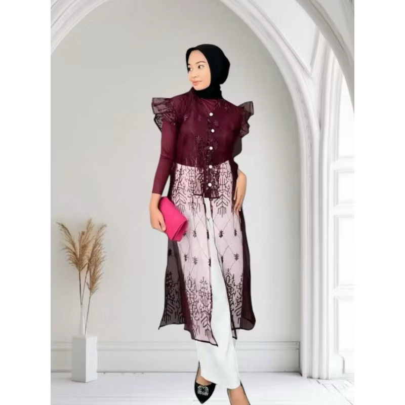 OLLA OUTER BROKAT LONG SOJIN KANCING/ OUTER KONDANGAN / OUTER WISUDA MOTIF RANDOM