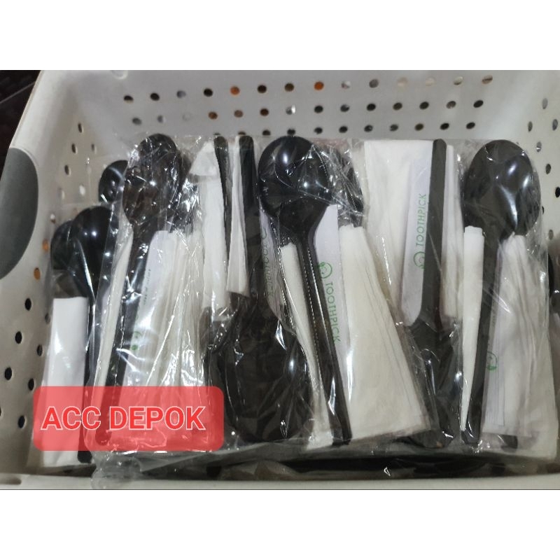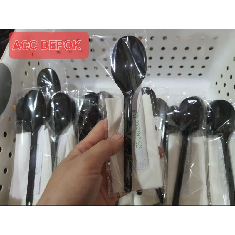 isi 100 set Sendok steril 3in1 / sendok+tusuk gigi + tisu / sendok kemasan plastik