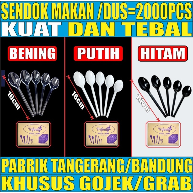 Sendok Makan Plastik HALAL Kuat Tebal Panjang Bening / Hitam / Putih Trifinity Per Dus Gjk