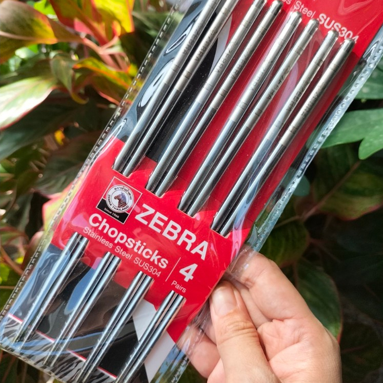 Sumpit Stainless PREMIUM / Sumpit Makan Stenlis /Sumpit Zebra Round Chopstick 4set 999005 ANTI KARAT